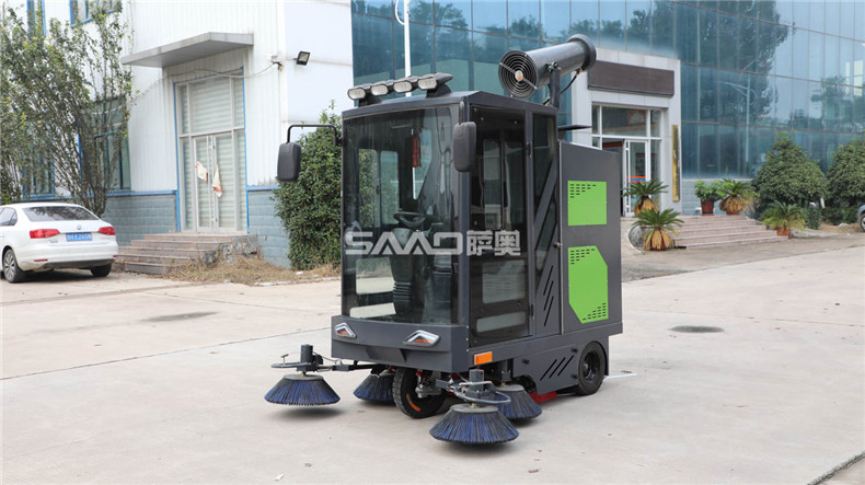 五刷全封閉駕駛室掃地機是掃地、噴水、吸塵相結合的自動駕駛式清潔能源綜合機器。清掃如粉塵、樹葉、煙頭,煙盒、小石子等垃圾。廣泛使用于學校、車間、車站、碼頭、賓館、物業、倉庫、地鐵站等區域。清掃效率是傳統的人工清掃效率的10-12倍,一臺掃地機可代替10-12位清潔工人。