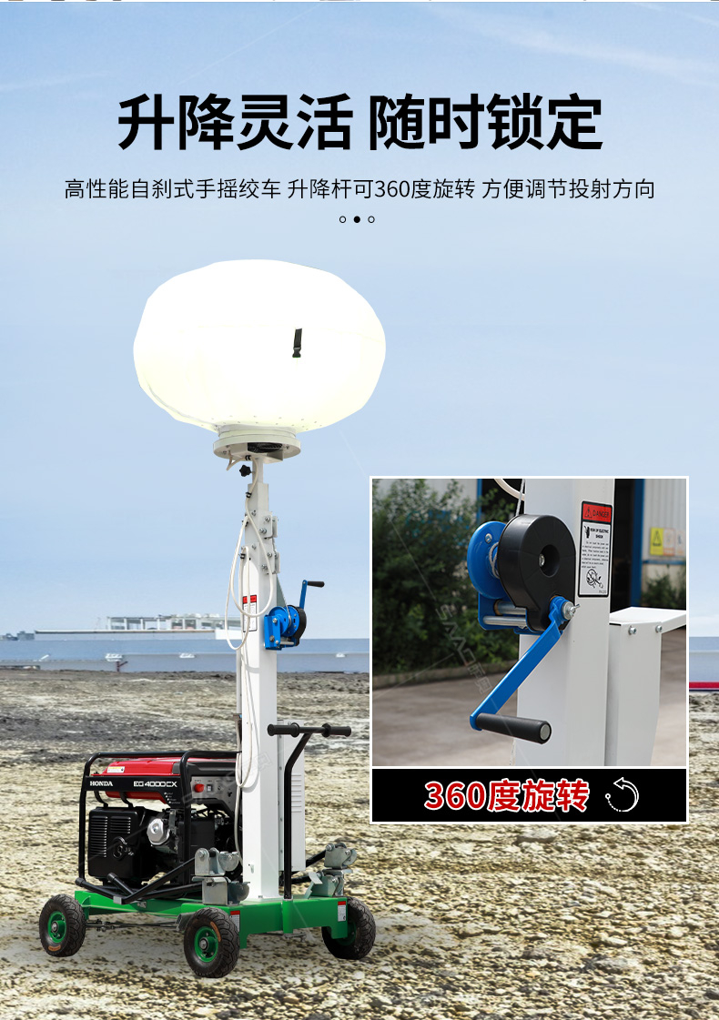 球型工程照明車SZM-Q1000用于體育場館、機場、碼頭等大型公共場所,公路、鐵路、電力等緊急搶險現場,露天采礦現場,以及防洪防汛、搶險救災現場等其他需要緊急備用光源
