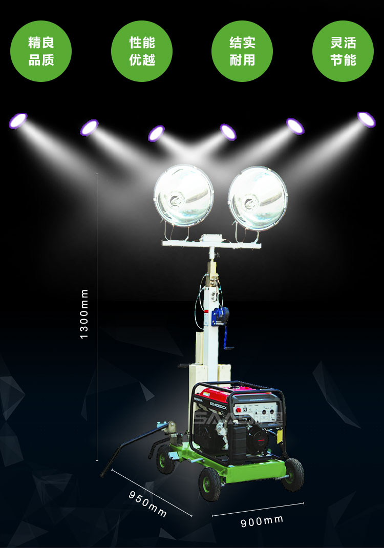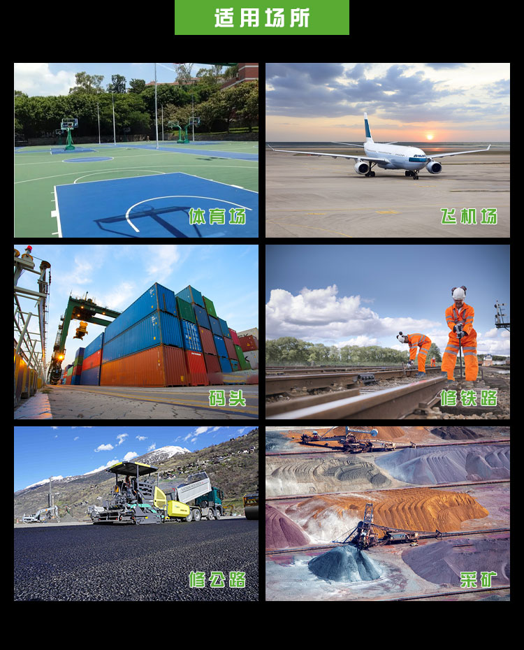 用于體育場館、機場、碼頭等大型公共場所,公路、鐵路、電力等緊急搶險現場,露天采礦現場,以及防洪防汛、搶險救災現場等其他需要緊急備用光源、電源的場合。