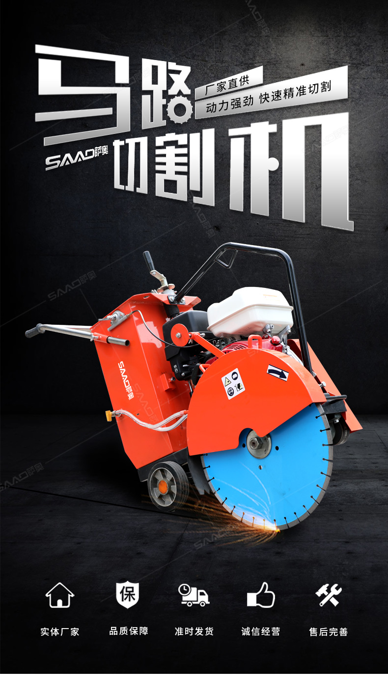 用于公路、市政、建筑、煤氣、通信部門修補公路或開挖溝槽時進行路面切割。相對于電動或柴油動力的路面切割機,操作輕巧省力,運輸方便,工作效率高。
