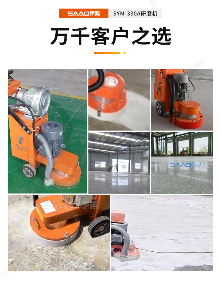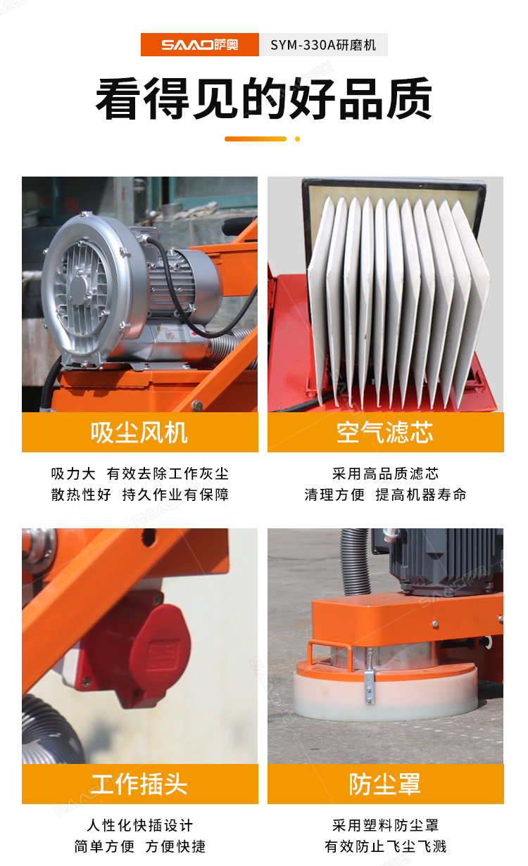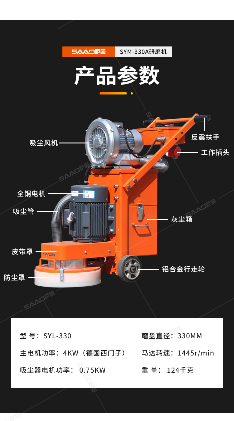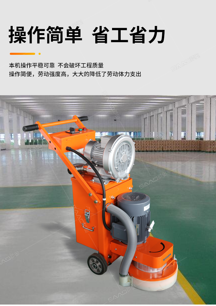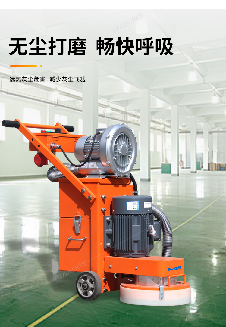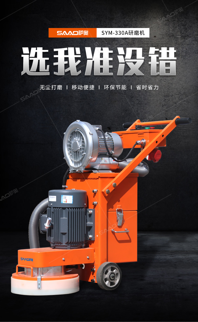 SYM-330手推式無塵地面研磨機,是集研磨和吸塵為一體的先進的路面機器,邊打磨邊吸塵,為我們提供良好的無塵打磨環境。特別是在地面混凝土強度低的情況,如果配上砂紙磨片,也可以打磨環氧膩子層;同時對環氧膩子層的磨損小,提高環氧地面的平整度。