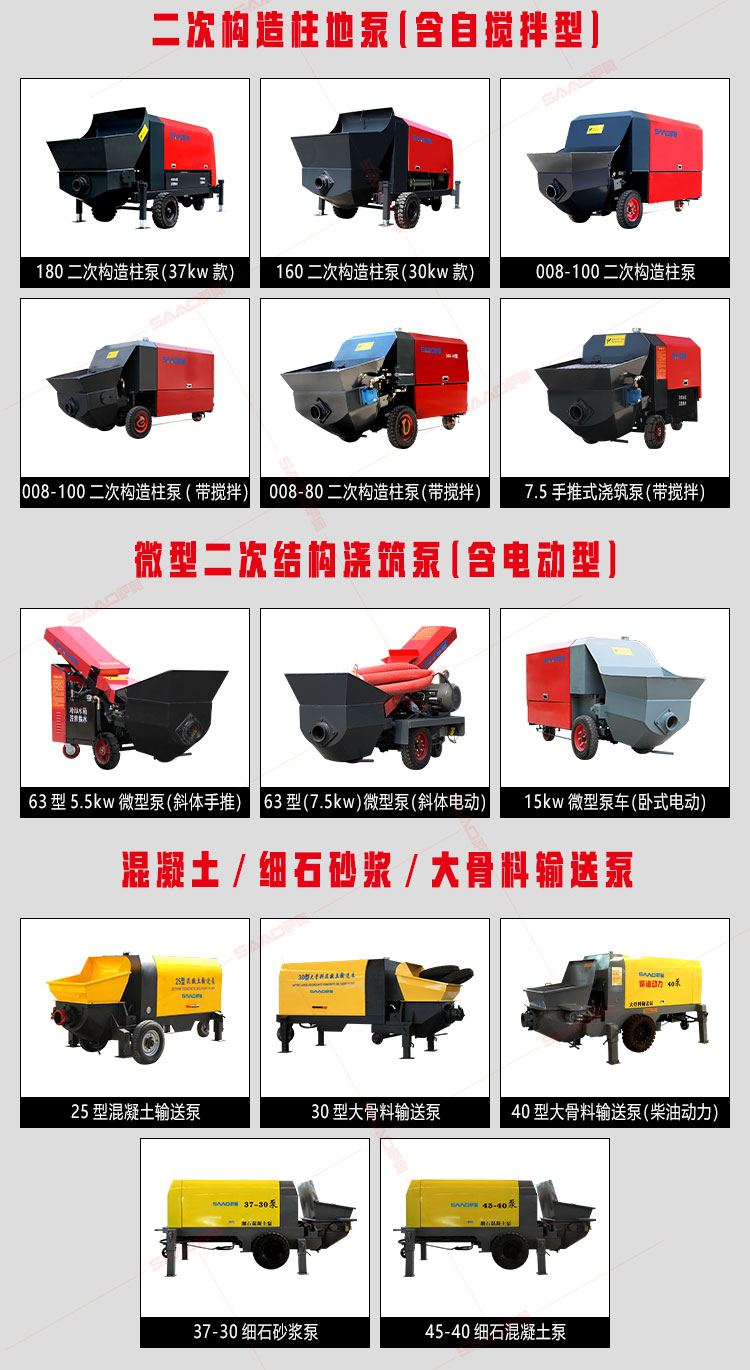 該設(shè)備具有電機功率大、性能穩(wěn)定、施工效率高等優(yōu)勢,使用電動澆筑泵大大提高了施工效率,降低勞動強度,節(jié)約人工,被廣泛應(yīng)用。具體產(chǎn)品詳情如下: