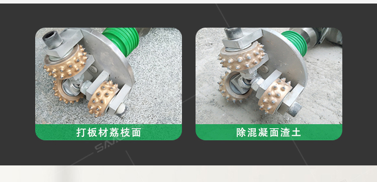 電動手持式鑿毛機 金剛石三頭鑿毛設備 小型水泥路面拉毛機 功率:1050w 工作效率:15-18㎡/h 電壓:220v 磨盤尺寸:50*120mm 合金磨輪尺寸:3*24齒 鑿毛深度:3-8mm 整機重量:7kg