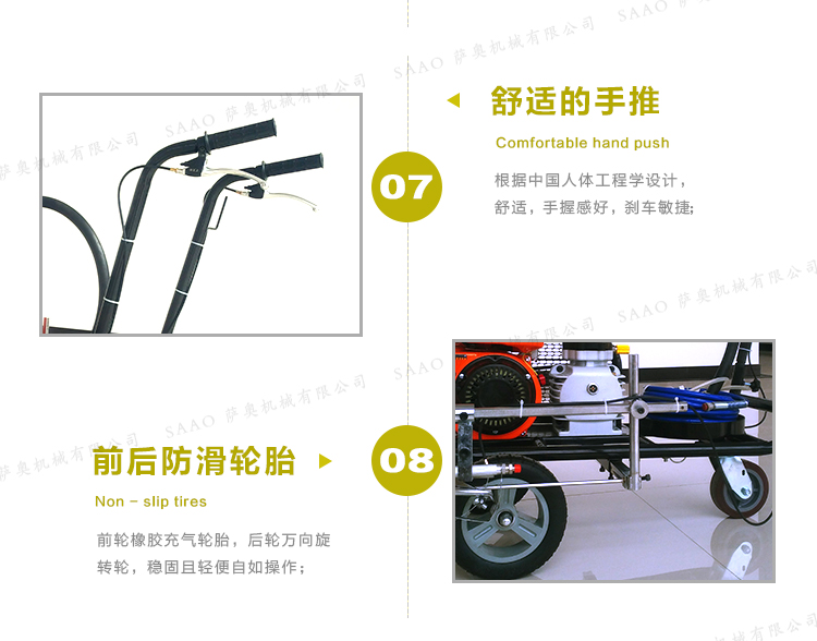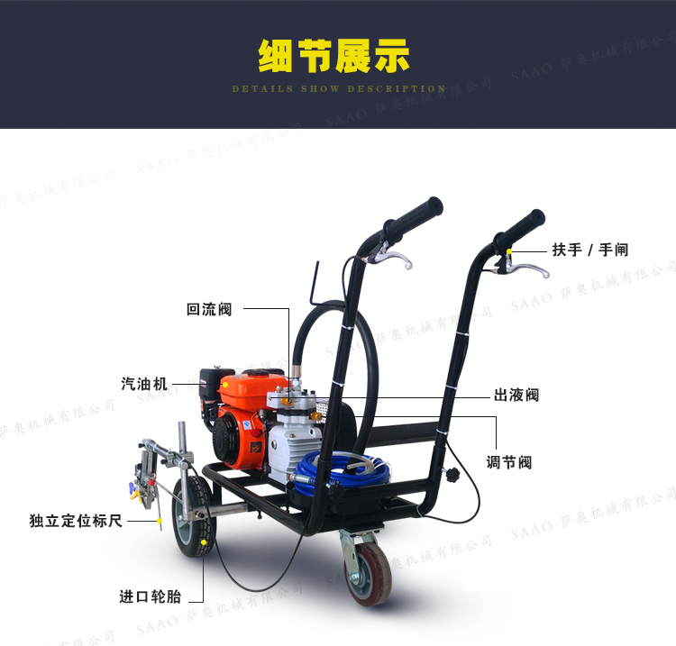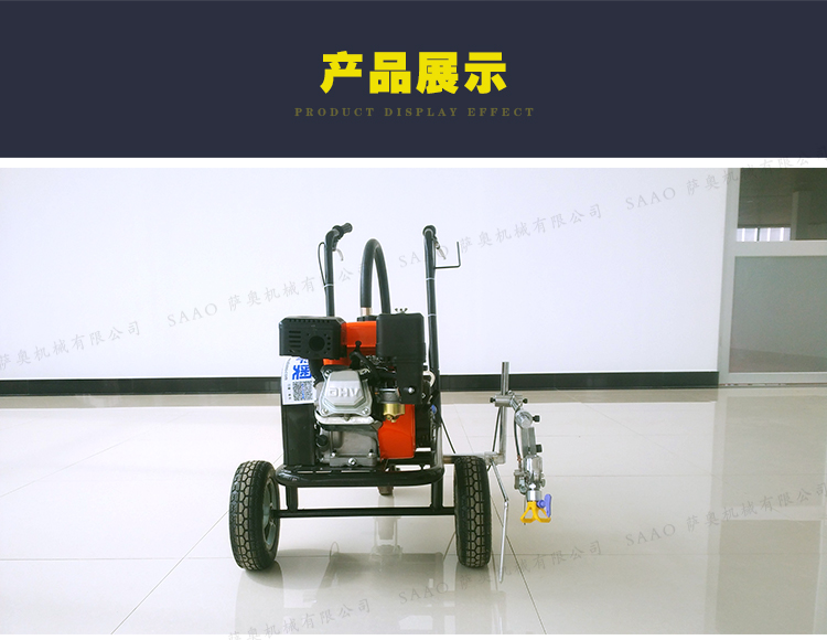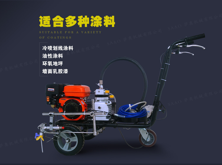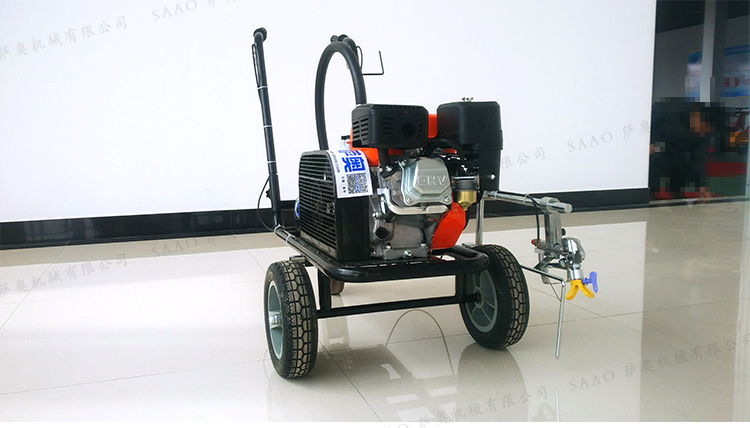 冷噴劃線機用汽油機帶動高壓泵的無氣噴涂技術運用于運動場地劃線車,噴出的線型清晰、流暢、飽滿、均勻、工作效率高。