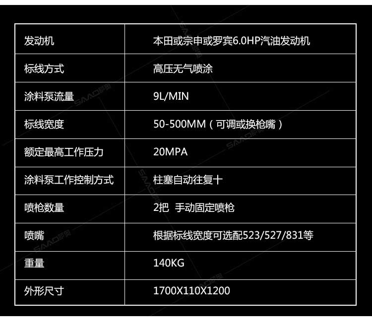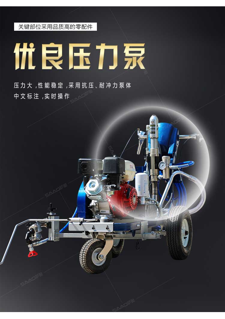產(chǎn)品介紹: 手推常溫標(biāo)線機(jī)是常溫標(biāo)線施工的專(zhuān)用設(shè)備,噴出的線型清晰、流暢、飽滿、均勻,主要用于公路、停車(chē)場(chǎng)、機(jī)場(chǎng)、加油站、公司廠區(qū)等涂畫(huà)直線、虛線、曲線、斑馬線、文