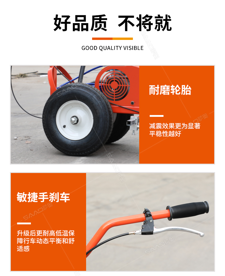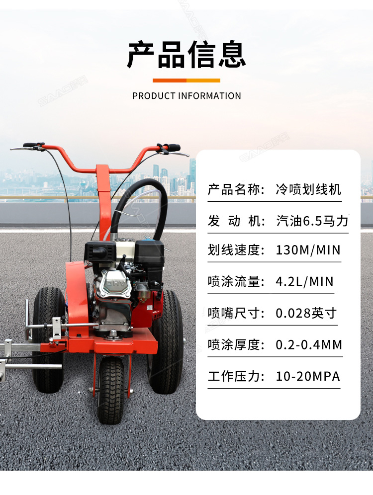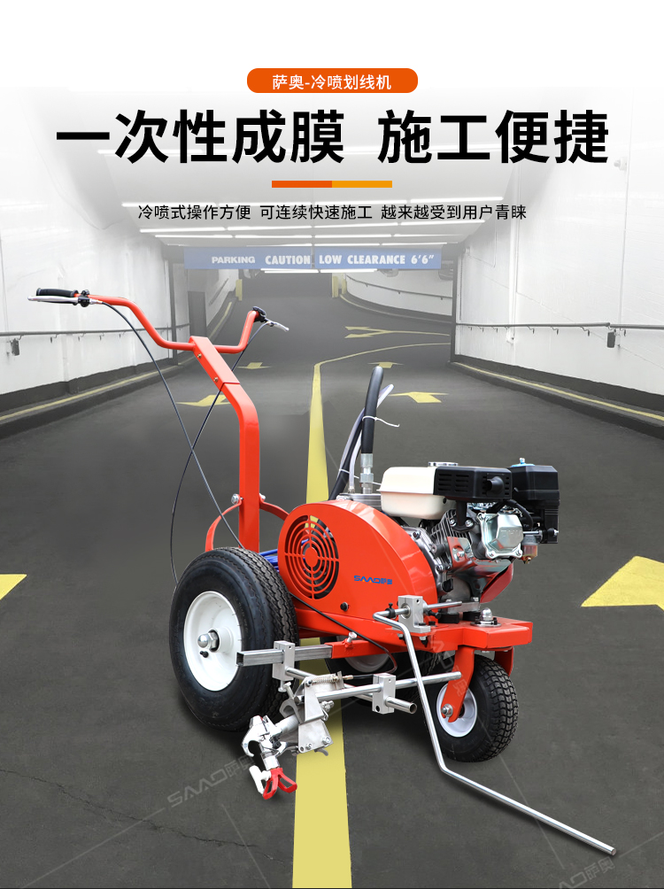 小型手推式道路劃線機是一種在道路、停車場、廣場和跑道等平整地面上劃出不同約束、指引和警示等規(guī)則限制標(biāo)志的路面施工機械。最常見的就是在馬路上劃斑馬線,在路上劃車庫線