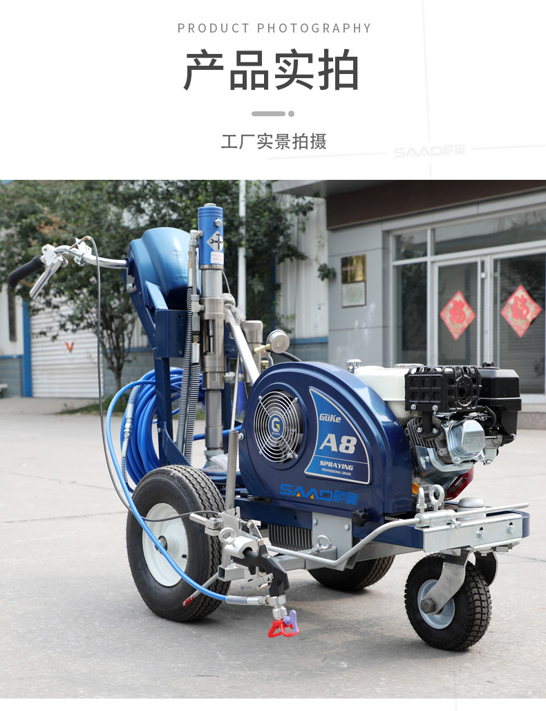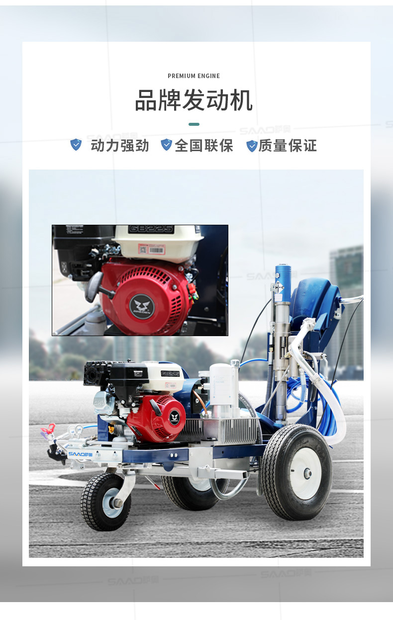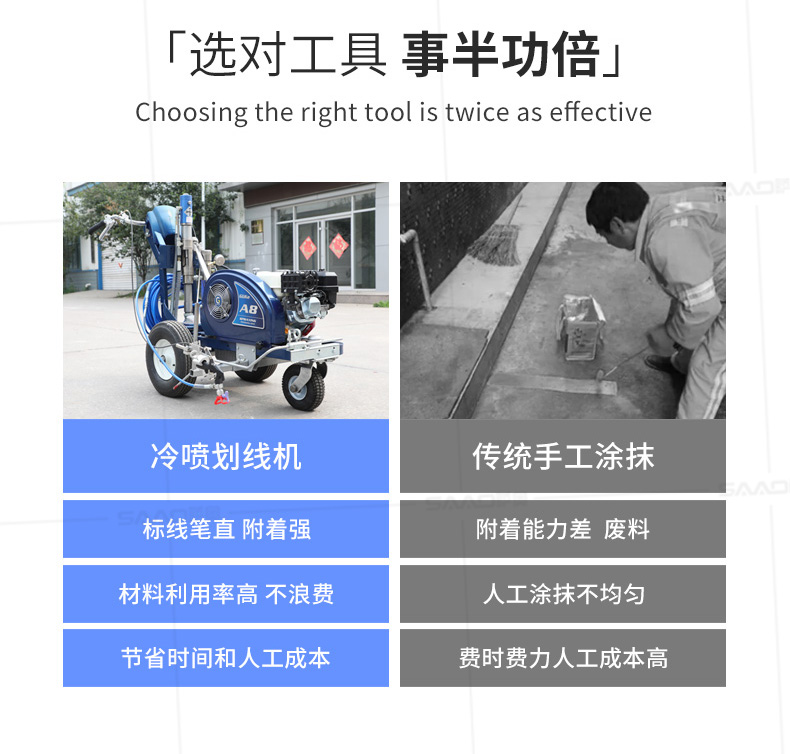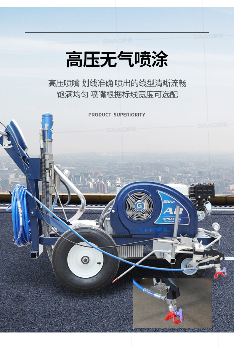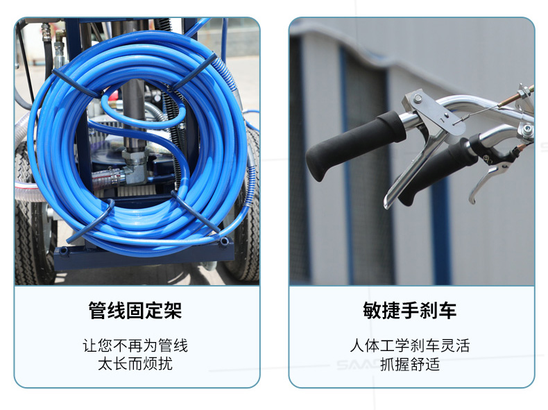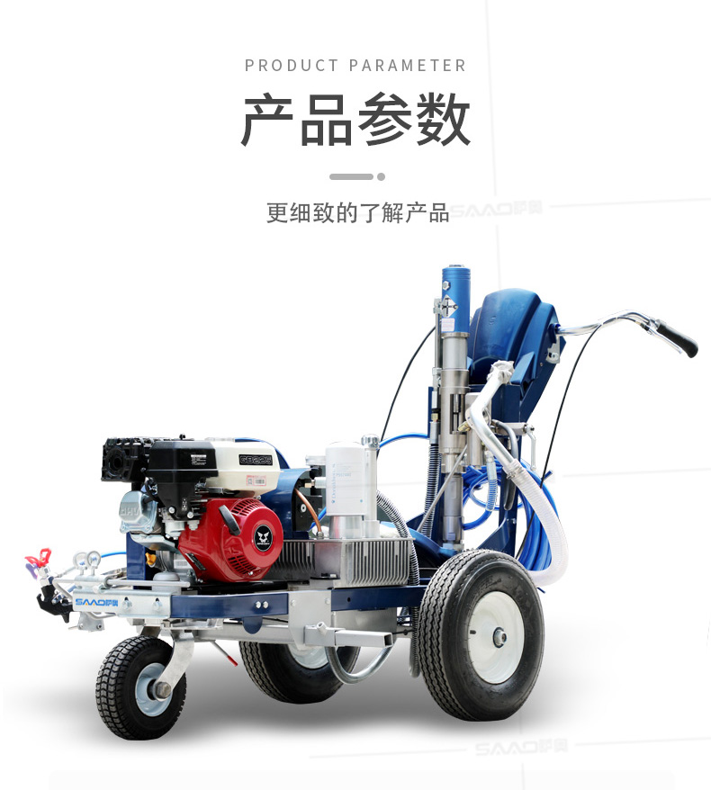 主要用于公路、市區(qū)、停車場、機場等涂劃直線、虛線、曲線、文字、箭頭等。具有劃線效果好、速度快、效率高、適用范圍廣、使用方便等優(yōu)點。