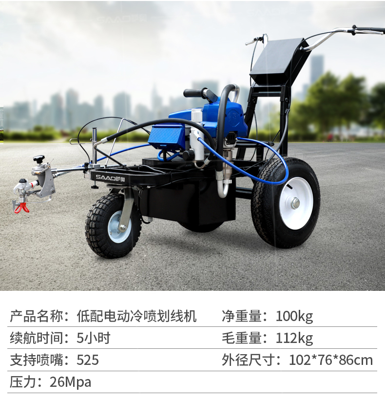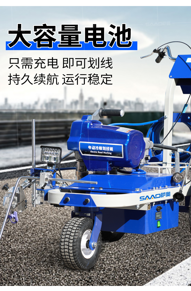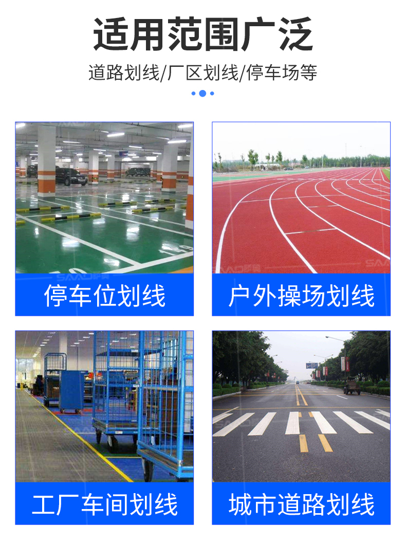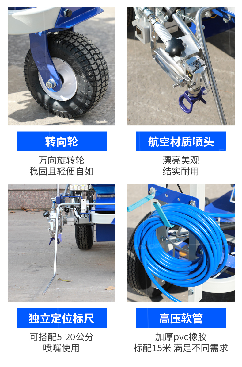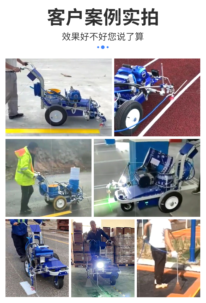 【產品介紹】 小區物業、地下車庫、學校、加油站、駕校場地等噴涂工作量不是特別大的客戶 【產品優勢】 持久續航,運行穩定,劃線筆直,無噪音。 真空氣輪:減震效果更為顯著平