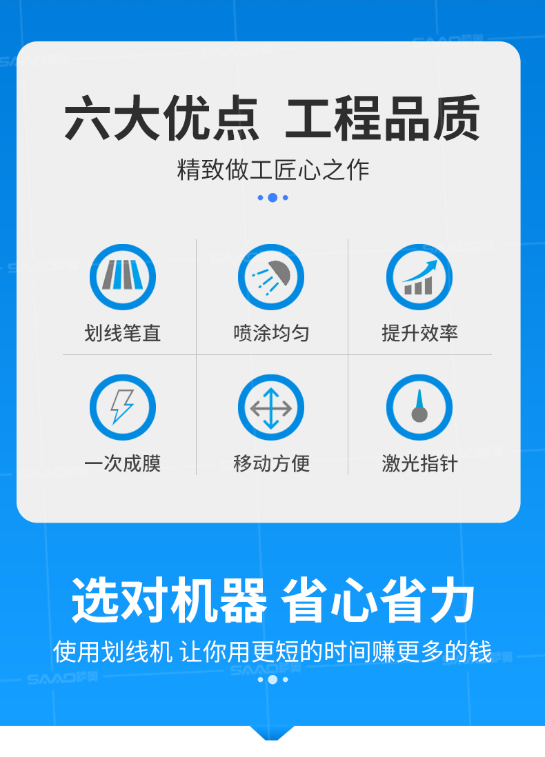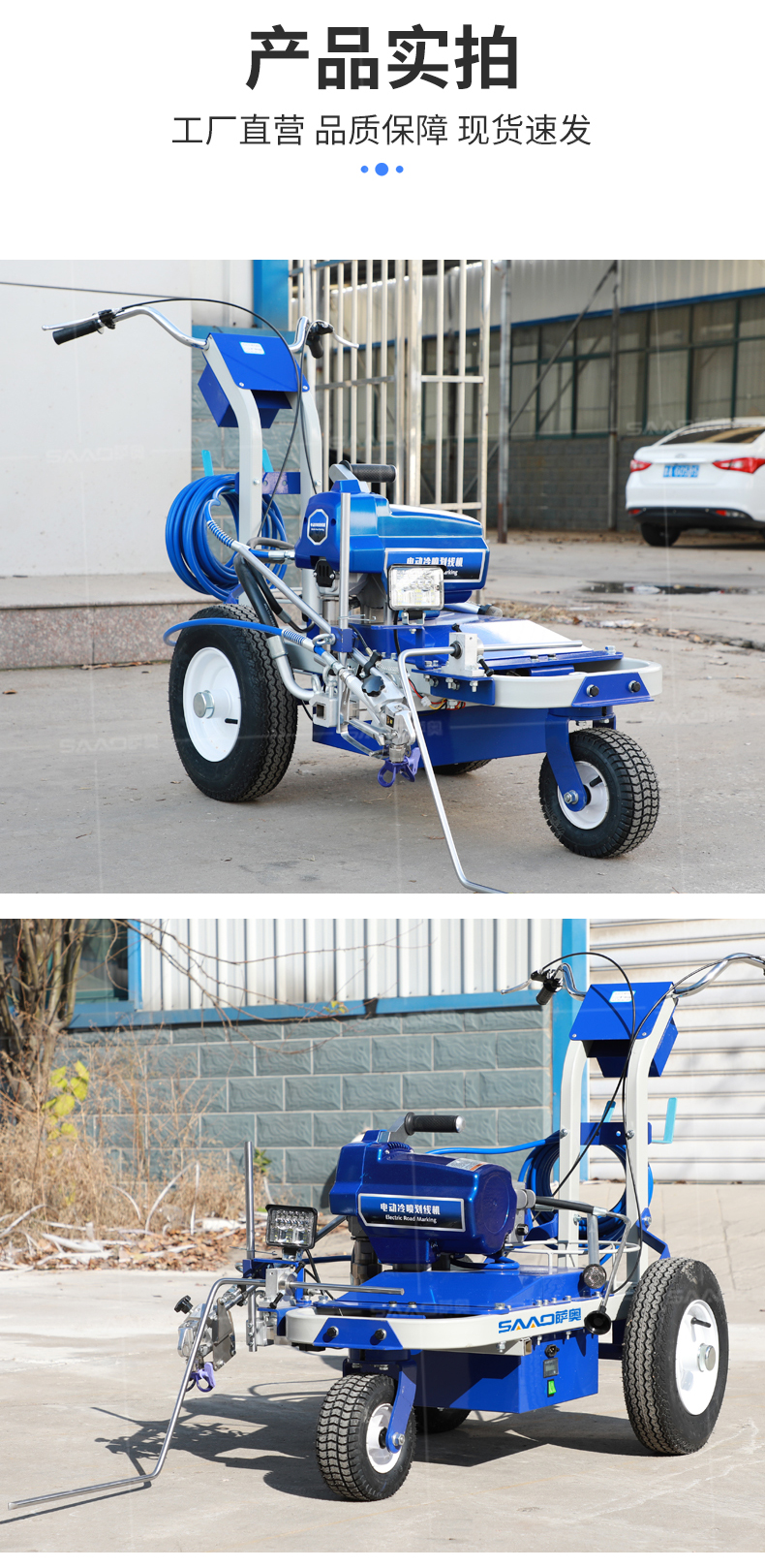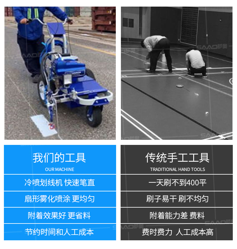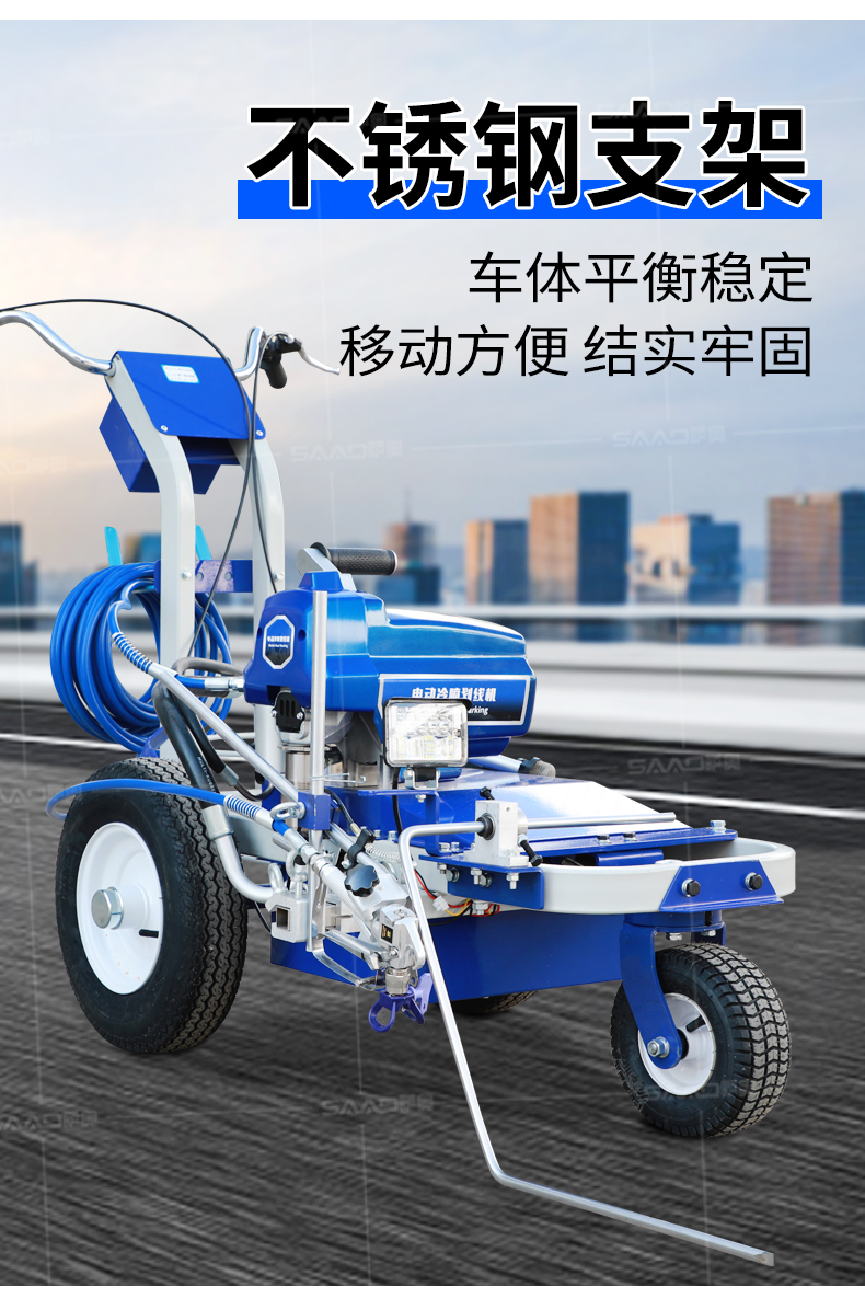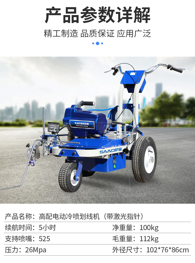 【產品介紹】 小區物業、地下車庫、學校、加油站、駕校場地等噴涂工作量不是特別大的客戶 【產品優勢】 持久續航,運行穩定,劃線筆直,無噪音。 真空氣輪:減震效果更為顯著平