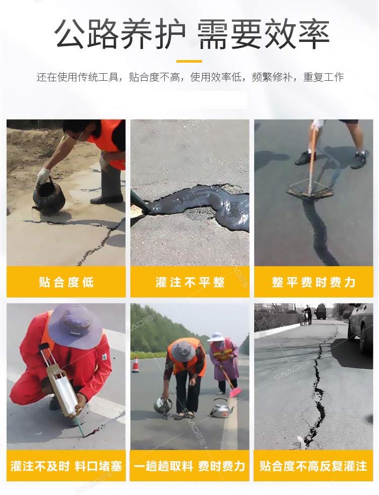 120升自動攪拌款灌縫機用于瀝青或水泥路面裂縫瀝青灌縫,注意:在灌縫前要對裂縫內的塵土進行清縫處理。