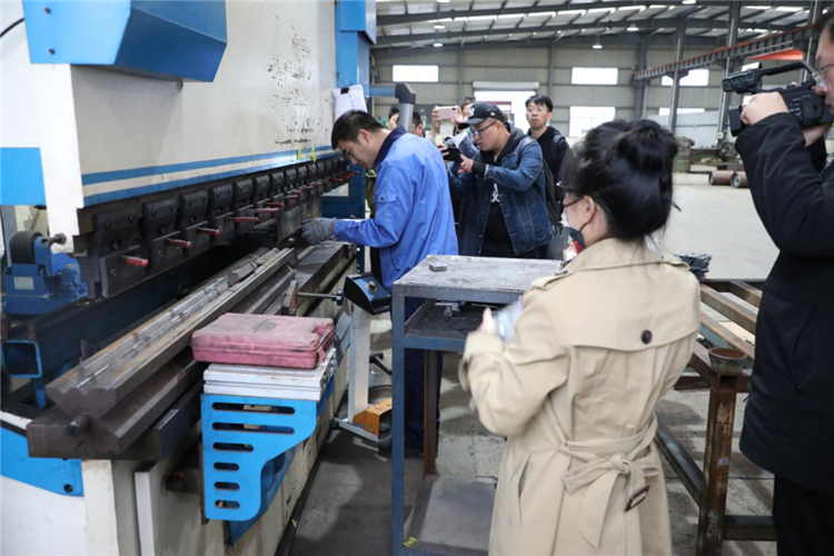 圖/韓總親自給采訪團介紹數控折彎機的神奇之處
