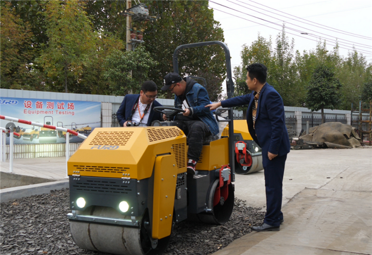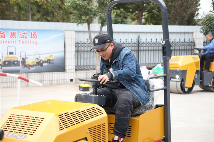 對于采訪團而言,只看還真不過癮,當大家參觀測試區時,看到測試員正在測試剛組裝好的座駕式壓路機,這時組織媒體采訪團的阿里負責人找到韓總說:“有些媒體朋友也想上機體驗一下。”壓路機不同其它設備,操作非常簡單,想試咱就試。韓總協調之后,采訪團紛紛上機體驗,從開壓路機的操作情形來看,誰也想不到這是一個平時拿筆桿子工作的人。