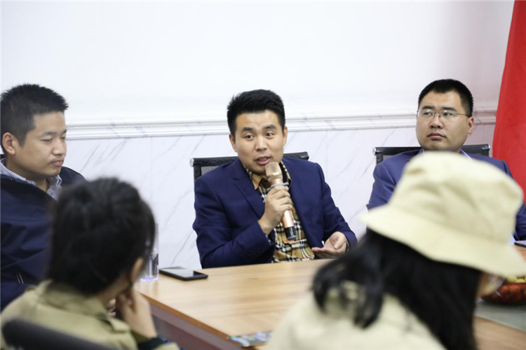 采訪團在感受完薩奧電商部奮戰雙十一奮戰場景后,便在薩奧會議室舉辦了媒體群訪小沙龍。作為東道主的薩奧成為被采訪的主角,大家都想更多的了解這位出其不意、利用電商銷售壓路機、挖掘機等工程設備的“吃螃蟹”的第一人。