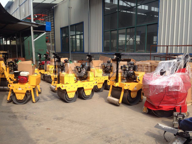 【批量手扶、座駕小型壓路機等待包裝發往目的地!】