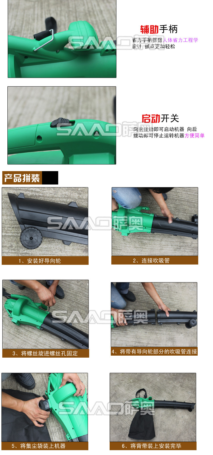 3.漂亮的外觀,輕便的重量,和超低的噪音和引導輪,讓你更好的體驗園林工作的樂趣