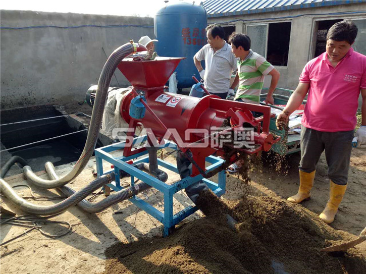禽畜類糞便處理機能將雞糞、牛糞、豬糞等禽畜糞便原糞水分離為液態有機肥和固態有機肥。液態有機肥可直接用于農作物利用吸收,固態有機肥可運到缺肥地區使用,也可起到改善土壤結構的作用,同時經過發酵可制成有機復合肥。用泥漿泵將原糞水送至機內,通過安置在篩網中的螺旋軸,擠壓分離出固態物質,液體則通過篩網從出液口流出。