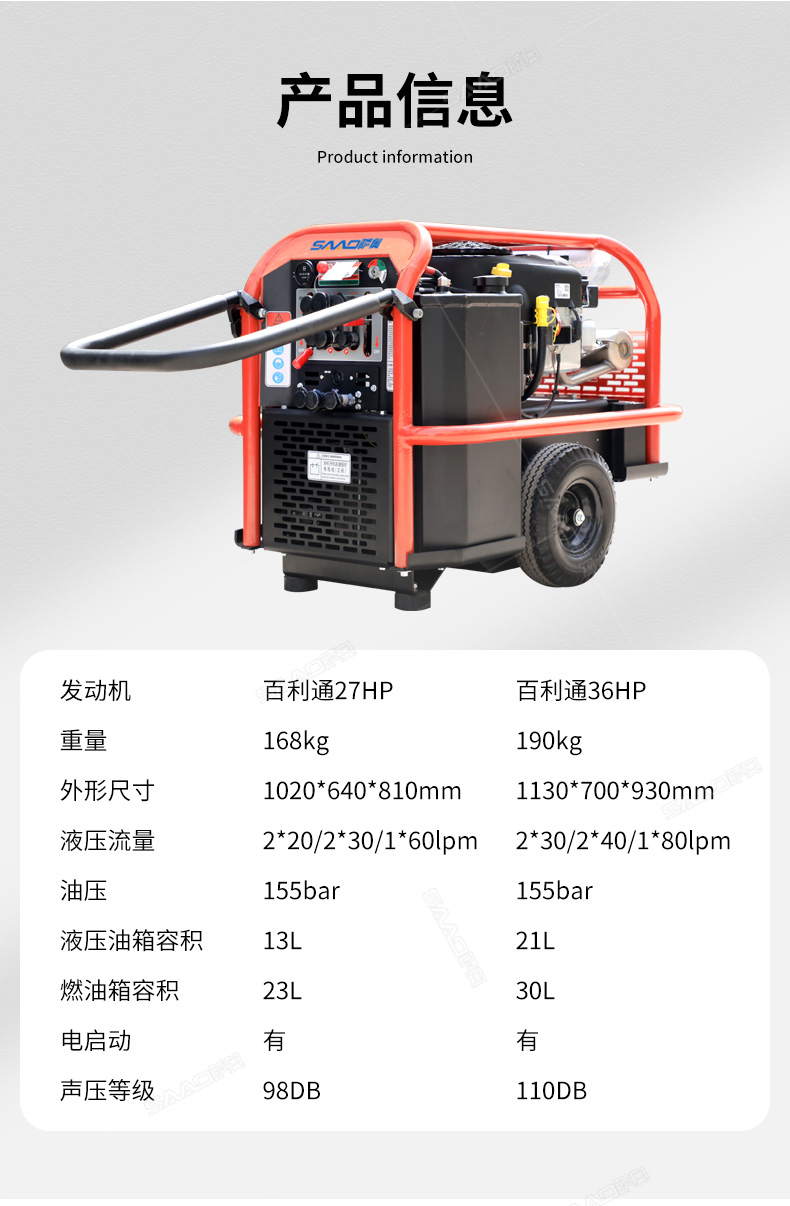 27馬力雙回路液壓動力
