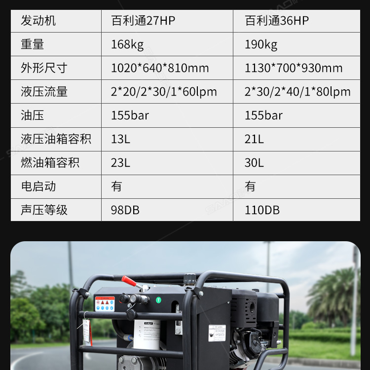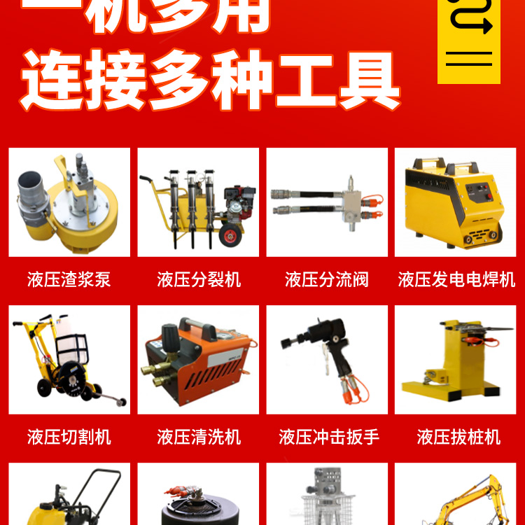【產品用途】 在公路市政養護、燃氣自來水搶修、地震和消防救援作業中提供方便可靠的動力源。 【產品介紹】 液壓動力站是為各種液壓工具提供液壓動力的泵站,像液壓渣漿泵、液