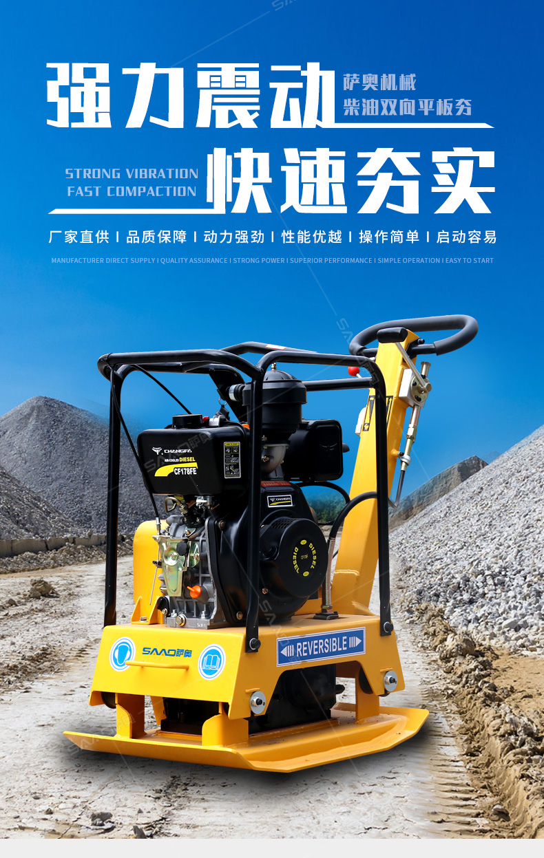 雙向平板夯適用于路基邊緣、橋涵、管道、溝槽底部等狹長地帶的壓實